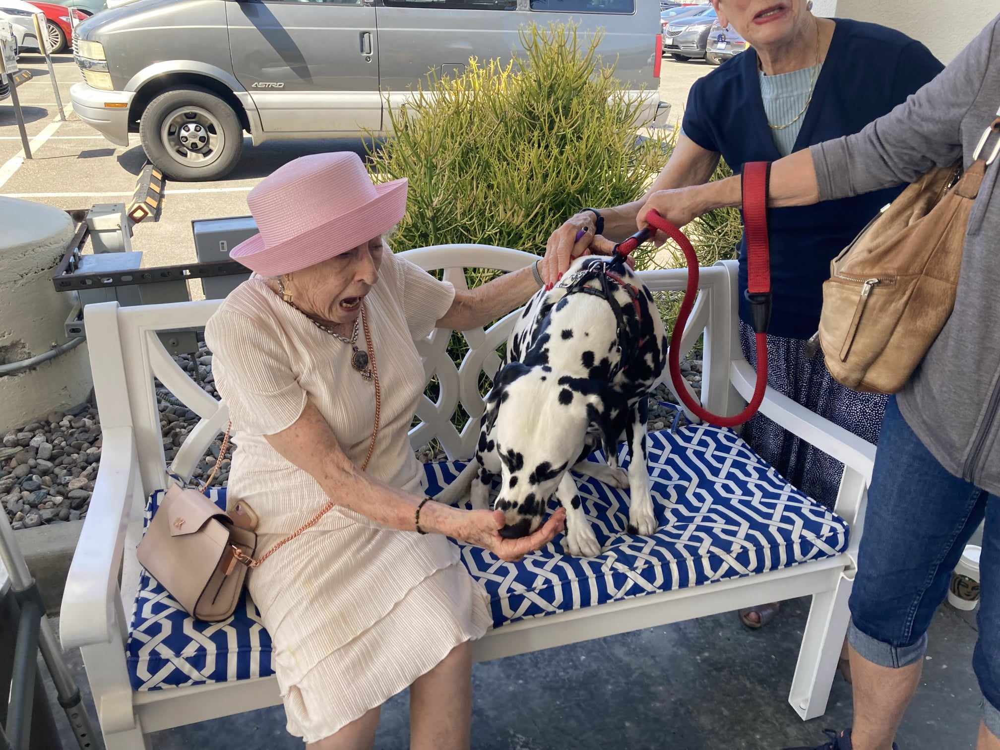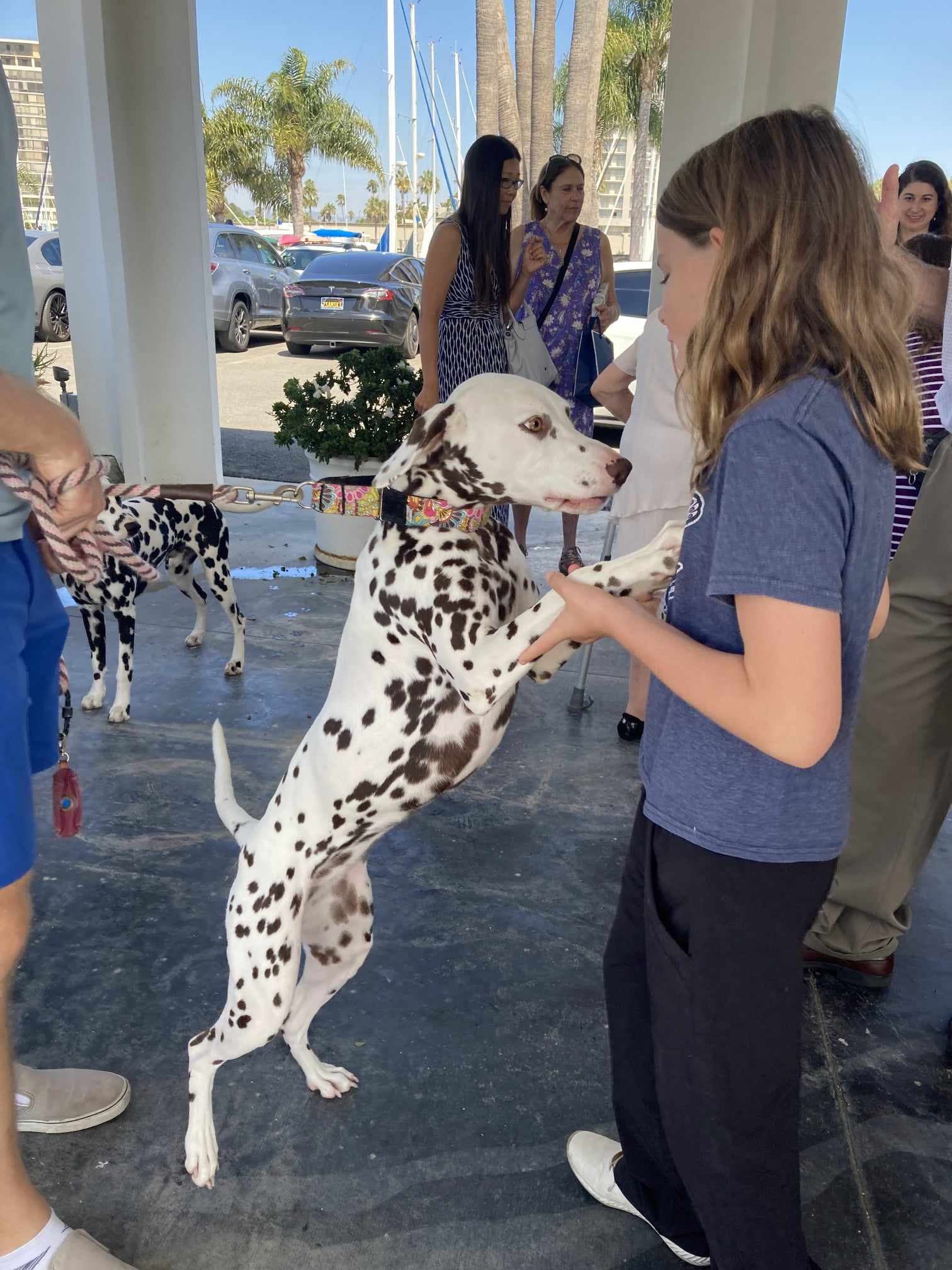 It seems that every time we take our Dalmatians out in public, it's like having a spotted unicorn on display. Everyone wants to meet and greet the Dalmatians! It was quite a crowd. All of the dogs handled the situation very well. Helen was very pleased! Gail was so appreciative that she was able to pull off this big surprise for her mom! It was very special to be able to be part of a 100 year old former Dalmatian owner's birthday celebration.