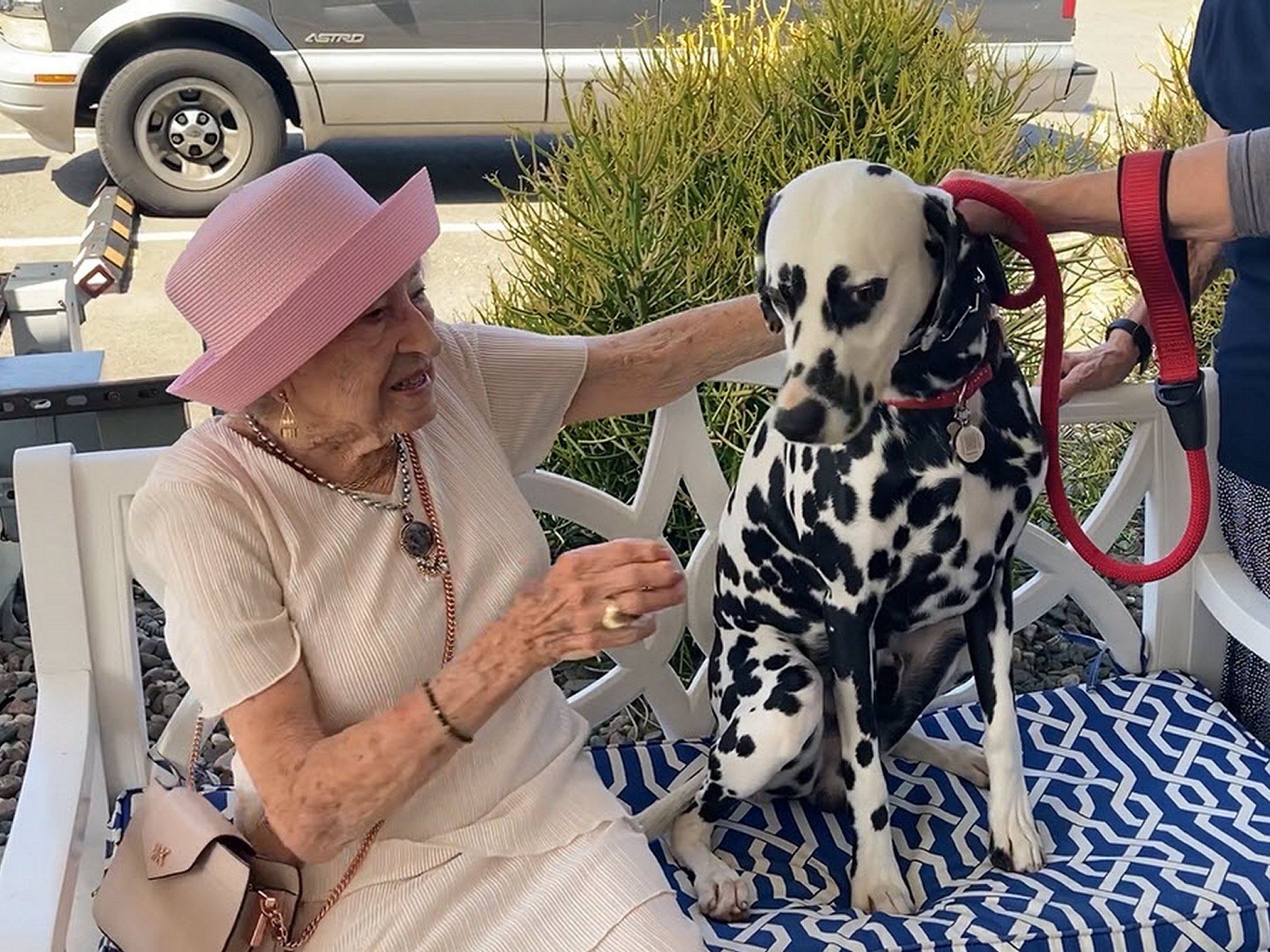 The Dalmatian Club of Southern California were honored to be invited and celebrate. This celebration took place on Sept 10, 2023 at a meet and greet location. Helen was a member of DCSC from 1960's and early '70's and had an AKC Champion Dalmatian. She still loves Dalmatians!! So glad we could make you smile Helen! Thank you (daughter) Gail for letting DCSC members and our spots (Jayson, Wyatt, Rhys and Rory) to be a part of this wonderful celebration of life.
